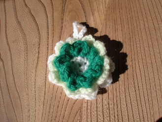 ただのアクリルたわしじゃつまらないので、ひらひらのフラワーにしてみました。